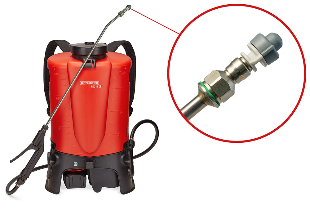 REC 15 PC 4 with NF 125: The battery backpack sprayer REC 15 PC4 for indoor disinfection provides an ideal surface coverage also for areas with difficult access (school rooms, meeting rooms, train coaches, public transportation, etc.). The fine droplets and the low throughput (60 microns and 0.15 l/min at  6 bars) allow an even coverage of the surfaces, without  soaking them. Therefore, the surfaces can be used again after a short time.